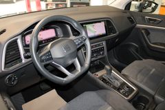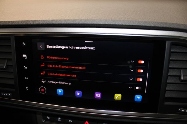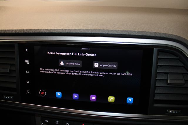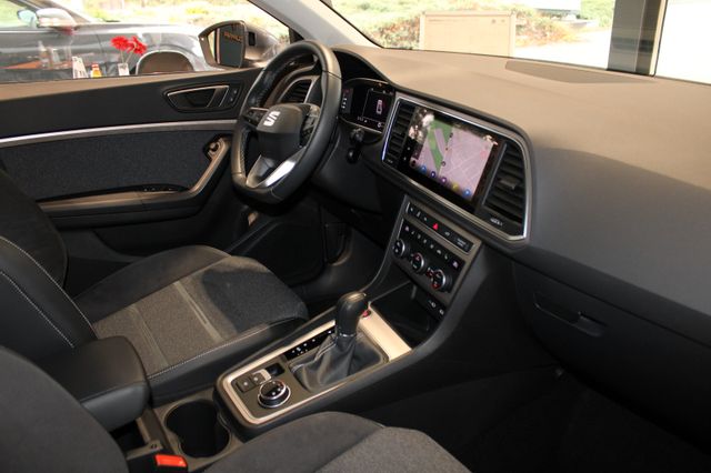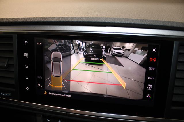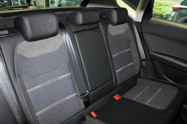 8 Lautsprecher, Ablagetasche an Vordersitzlehnen, Airbag Beifahrerseite abschaltbar, Airbag Fahrer-/Beifahrerseite, Antriebs-Schlupfregelung (ASR), Außenspiegel elektr. verstell-, heiz- und anklappbar mit Spiegelabsenkung, Außenspiegel Wagenfarbe, Blinkleuchten LED in Außenspiegel integriert, Bluetooth-Schnittstelle mit Freisprecheinrichtung integriert, Bordcomputer, Brillenfach, Design-Paket Exterieur, silber, Doppeltonhorn, Einstiegsleisten beleuchtet, Elektron. Querdifferentialsperre (XDS), Fahrassistenz-System: Berganfahr-Assistent (Hill-Holder), Fahrassistenz-System: Fahrprofilauswahl (SEAT Drive Profile), Fahrassistenz-System: Müdigkeitserkennung, Fahrassistenz-System: Spurhalteassistent, Fahrassistenz-System: Umfeldbeobachtungssystem (Front assist) mit City-Notbremsfunktion, Fahrassistenz-System: Verkehrszeichenerkennung, Fensterheber elektrisch vorn + hinten mit Komfortschaltung, Gepäckraumabdeckung / Rollo, Handschuhfach beleuchtet, Heckleuchten LED mit dynamischem Blinklicht, Innenraumlicht-Paket LED, Klimaanlage Climatronic 2-Zonen, Knieairbag Fahrerseite, Kofferraumbeleuchtung, Kopf-Airbag-System, Lendenwirbelstütze Sitz vorn links, verstellbar, Lendenwirbelstütze Sitz vorn rechts, verstellbar, Licht- und Sicht-Paket, Mittelarmlehne hinten, Mittelkonsole vorn mit Mittelarmlehne, Becherhalter, Ablagebox und Luftausströmer hinten, Modellpflege, Motor 1,5 Ltr. - 110 kW 16V TSI ACT, Nebelscheinwerfer LED mit Abbiegelicht, Notrufsystem, Otto-Partikelfilter (OPF), Parkbremse elektrisch mit Auto-Hold-Funktion, Reifenkontroll-Anzeige, Rückfahrkamera, Rücksitzlehne geteilt/klappbar (1/3-2/3), Schadstoffarm nach Abgasnorm Euro 6e, Schalt-/Wählhebelgriff Leder, Scheinwerfer Voll-LED, Schließ-/Startsystem Kessy, SEAT Media-System Plus, Seitenairbag, Seitenscheiben hinten und Heckscheibe abgedunkelt, Sitz vorn links höhenverstellbar, Sitz vorn rechts höhenverstellbar, Sonnenblende links mit Spiegel (beleuchtet), Sonnenblende rechts mit Spiegel (beleuchtet), Start/Stop-Anlage, Stau-/Ablagefach unter Sitz vorn links, Steckdose (12V-Anschluß) vorn, USB-Ladeanschlüsse (2-fach, Typ C) für 2.Sitzreihe, Verzurrösen Koffer-/Laderaum