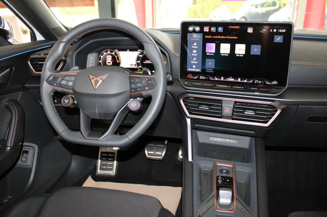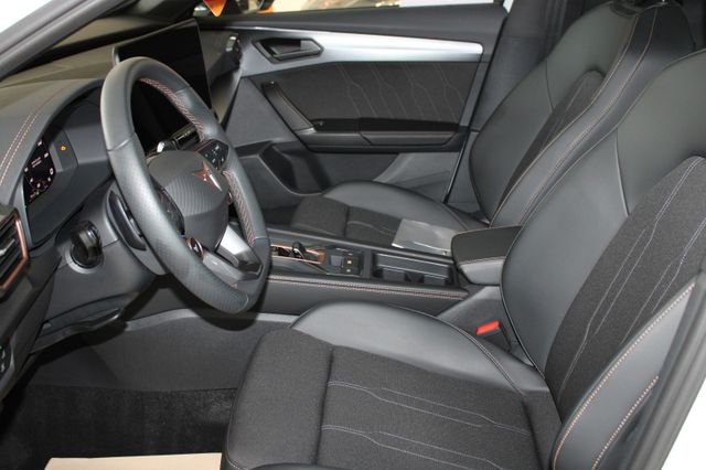 6 Lautsprecher, Abdeckkappen Außenspiegel Schwarz, Airbag Beifahrerseite abschaltbar, Airbag Fahrer-/Beifahrerseite, Außenspiegel elektr. verstell-, heiz- und anklappbar mit Spiegelabsenkung und Welcome Light, Connectivity-Box, Dachhimmel schwarz, Dachreling schwarz, hochglänzend, Differentialsperre (Vorderachse), Einparkhilfe vorn und hinten, Einstiegsleisten vorn beleuchtet, Elektron. Differentialsperre (XDS), Fahrassistenz-System: Fahrprofilauswahl (CUPRA Drive Profile), Fensterheber elektrisch vorn + hinten mit Komfortschaltung, Fensterzierleisten schwarz, Full Link (MirrorLink, Apple CarPlay und Android Auto), Gepäck-/Laderaumboden doppelt, Gepäckraumabdeckung / Rollo, Gepäckraumbeleuchtung (LED), Handschuhfach mit LED-Beleuchtung, Innenausstattung: Interieurleisten Copper, Isofix-Aufnahmen für Kindersitz an Beifahrersitz und Rücksitz (inkl. i-Size-Kindersitze), Karosserie: 5-türig, Klimaanlage Climatronic 3-Zonen, Kombiinstrument digital (virtual cockpit), Kopf-Airbag-System, Kopfstützen hinten (3-fach), Ladekabel mit Schukostecker, Lendenwirbelstütze Sitz vorn links, verstellbar, Lendenwirbelstütze Sitz vorn rechts, verstellbar, Leseleuchten hinten LED, Leseleuchten vorn LED, Licht- und Sicht-Paket, LM-Felgen, Media-System Plus, Mild-Hybrid 110 kW (Motor 1,5 Ltr. - 110 kW eTSI), Modellpflege, Notrufsystem, Otto-Partikelfilter (OPF), Parkbremse elektrisch mit Auto-Hold-Funktion, Radioempfang digital (DAB+), Radstand Standard, Reifen-Reparaturset, Rücksitzlehne geteilt/klappbar mit Mittelarmlehne und Durchladeeinrichtung, Rücksitzlehnen umklappbar mit Fernentriegelung im Kofferraum, Schadstoffarm nach Abgasnorm Euro 6e, Seitenairbag, Seitenairbag vorn mitte (Central Airbag), Seitenscheiben ab 2.Sitzreihe und Heckscheibe dunkel getönt (Privacy Glass), Seitenscheiben hinten und Heckscheibe abgedunkelt, Sitz vorn links höhenverstellbar, Sitz vorn rechts höhenverstellbar, Sitzbezug / Polsterung: Stoff/Kunstleder schwarz (Sharp Textil), Sonnenblende links mit Spiegel (beleuchtet), Sonnenblende rechts mit Spiegel (beleuchtet), Sportsitze vorn, Start/Stop-Anlage, Steckdose 230V im Gepäckraum, USB-Ladeanschlüsse (2-fach, Typ C) für 2.Sitzreihe, USB-Schnittstelle vorn (2-fach, Typ C), Verzurrösen Koffer-/Laderaum, Voll-LED-Paket, Warnanlage für Sicherheitsgurt-System, Wärmeschutzverglasung